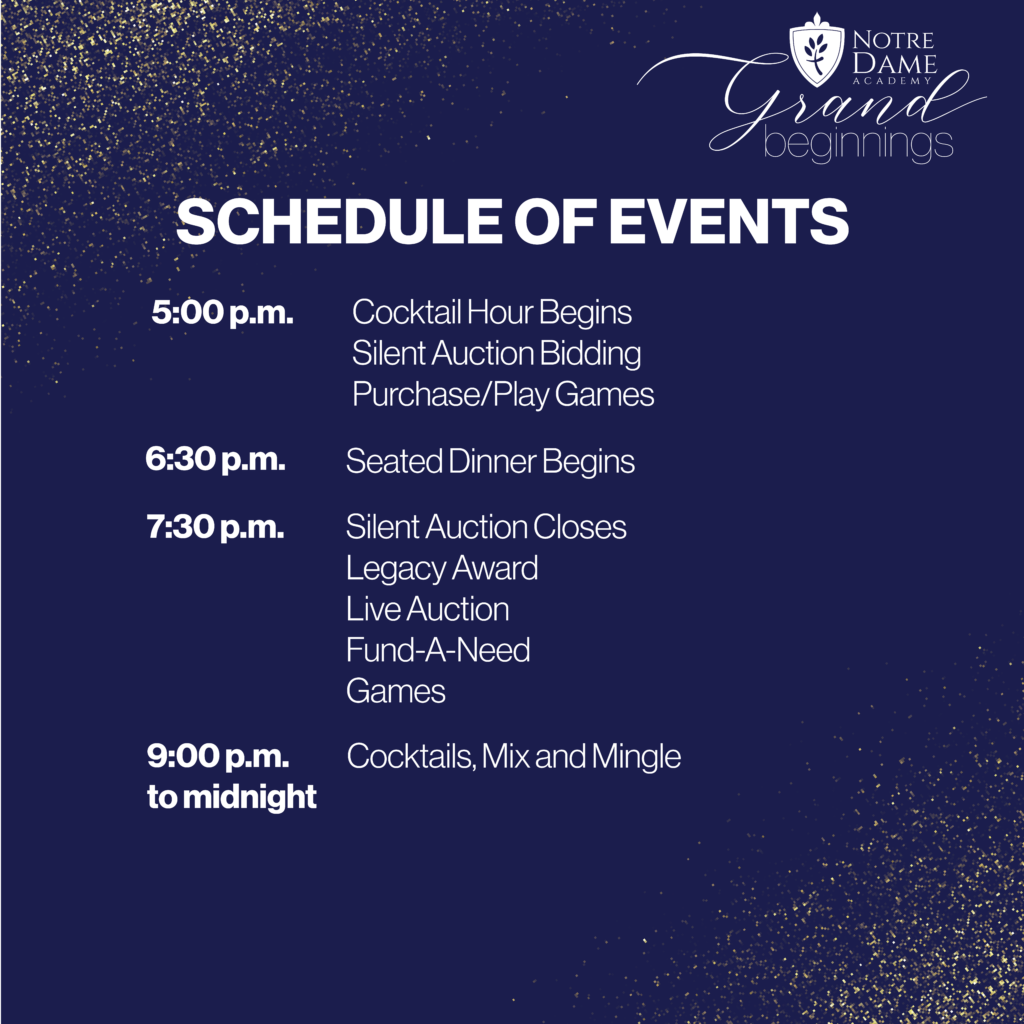More than a fundraiser, Grand Beginnings is an opportunity to support the school’s educational needs, both in classrooms and in various auxiliary areas. By attending the event you are helping decrease tuition costs, update our classrooms, provide healthy lunches for all students, and meet a host of needs for students and teachers alike. Grand Beginnings has traditionally been one of NDA’s larger fundraisers, and our largest community event.