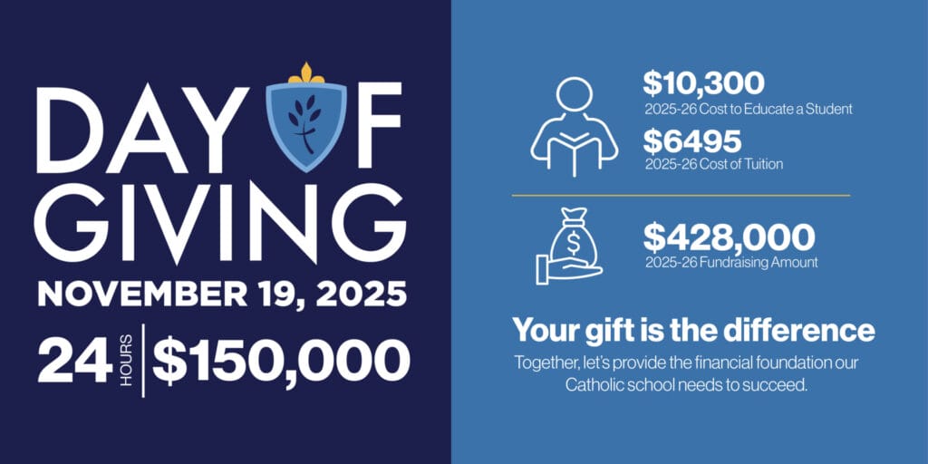 Day of Giving is our largest fundraiser that contributes to our 2025-2026 overall fundraising goal of $428,000. It is important that we meet this goal to keep tuition affordable and a Catholic education accessible to all.